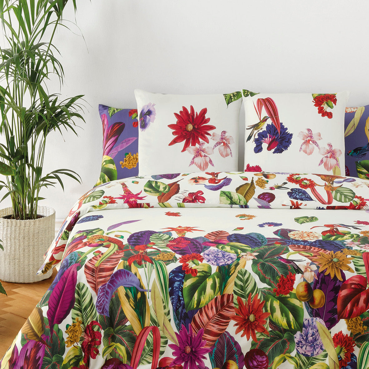 Housse de couette + taie(s) d’oreiller satin de coton - Jardin tropical