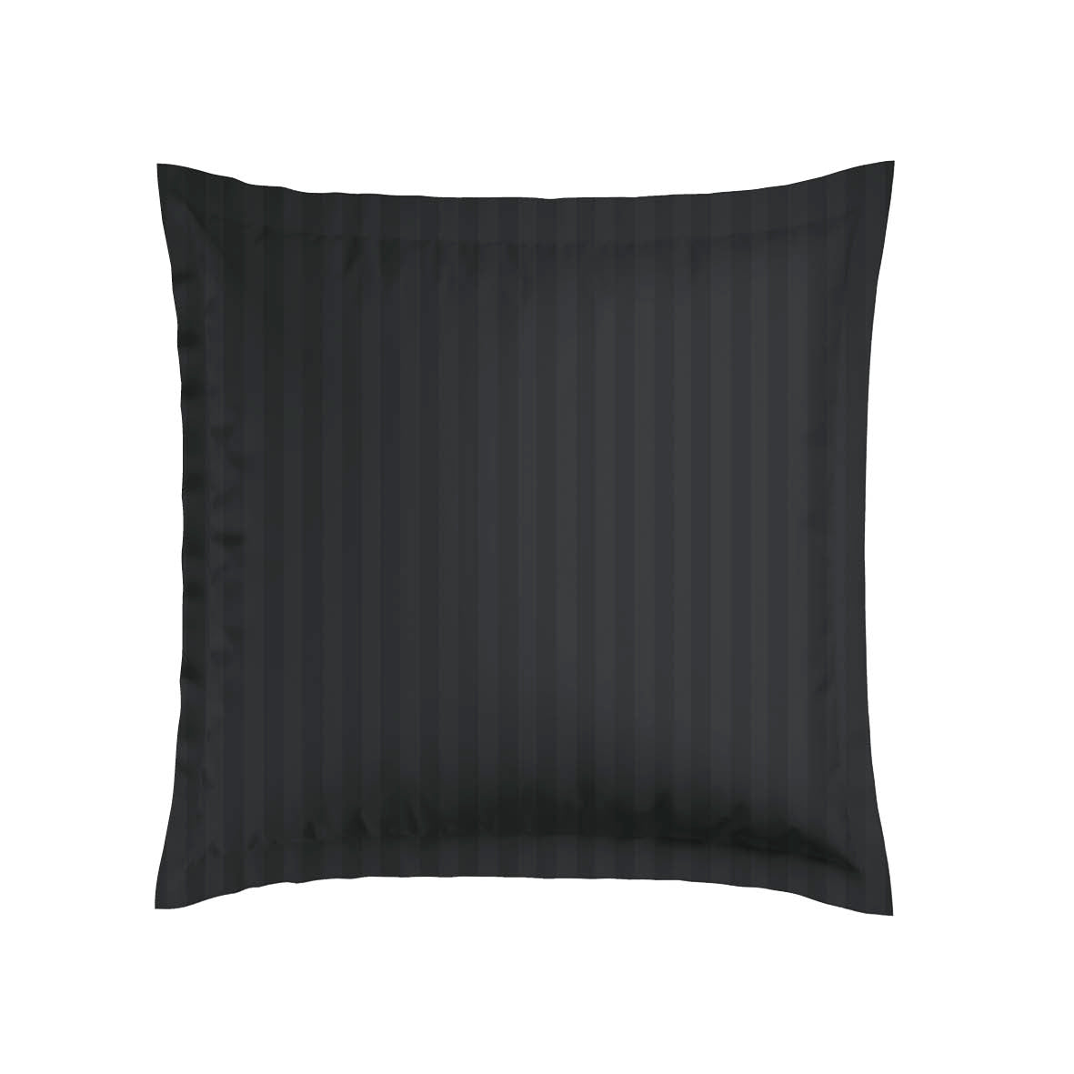 Taie(s) d'oreiller satin de coton rayure tissé dobby - Noir