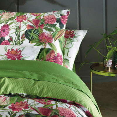 Housse de couette + taie(s) d'oreiller satin de coton - Garden vert (Taille)
