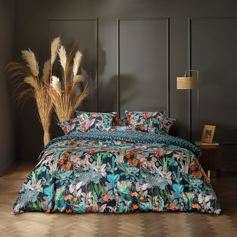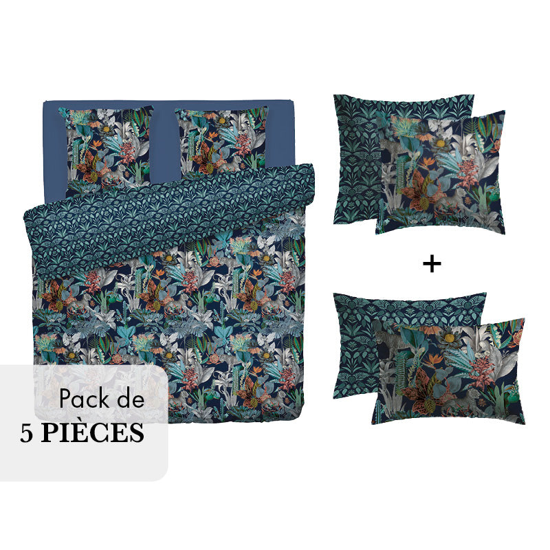 PARURE ZANZIBAR BLEU - Housse de couette + taie(s) d'oreiller - 100% satin de coton (Taille)