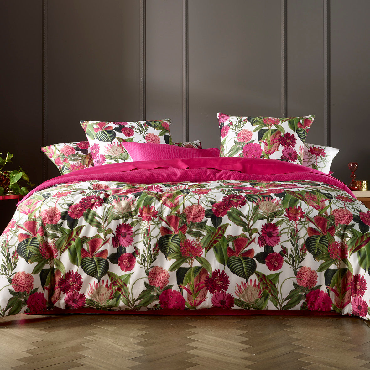 Duvet cover + pillowcase(s) cotton satin - Garden Fuchsia