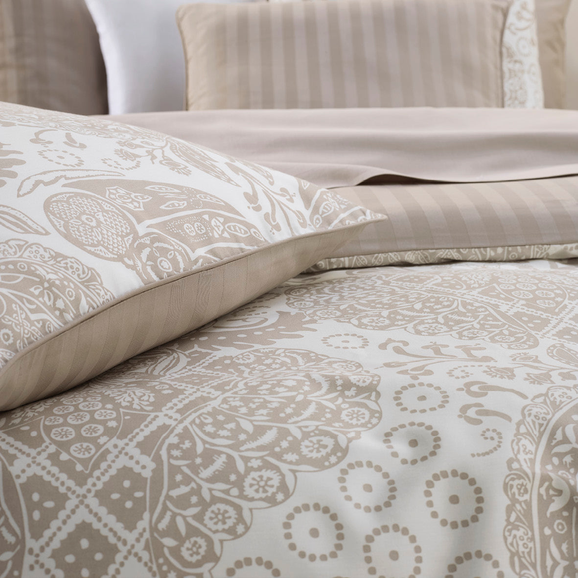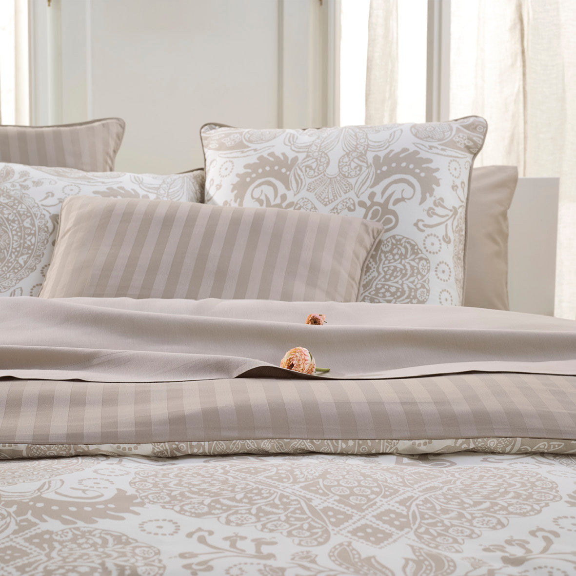 The delicacy of the cotton satin gives a soft and silky touch, an incomparable shine. The fabric is breathable, moisture absorbing and soft, smooth and fresh! Thanks to the Easy Care finish, the cotton satin is easy to iron and guarantees an optimal night's sleep.