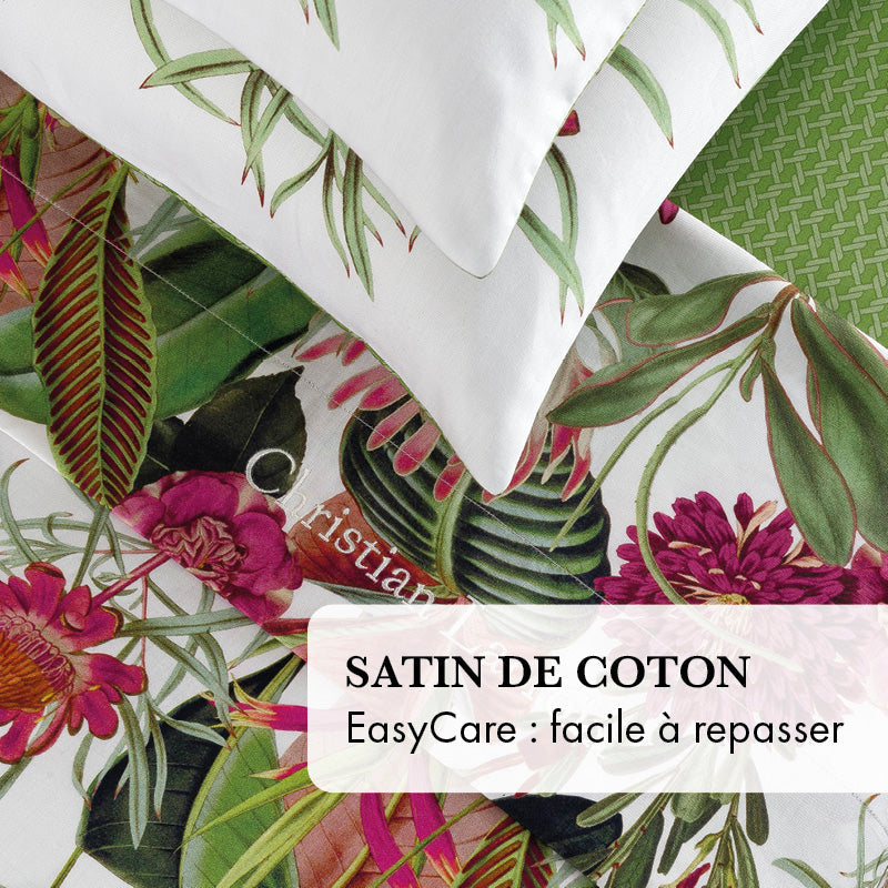 La finesse du satin de coton donne un toucher souple et soyeux, un éclat incomparable. Le tissu est respirant, absorbant l'humidité et est doux, lisse et frais! Grâce à la finition Easy Care le satin de coton se repasse facilement et garantit une nuit de sommeil optimale.