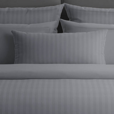 Drap plat satin de coton rayure tissé dobby - Gris foncé