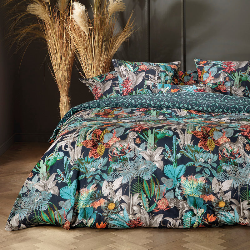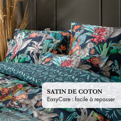 Le design Zanzibar Bleu séduit par son intensité apaisante et son allure intemporelle. Grâce au satin de coton, cette parure allie esthétisme et confort durable, idéale pour les amateurs de linge de lit haut de gamme.